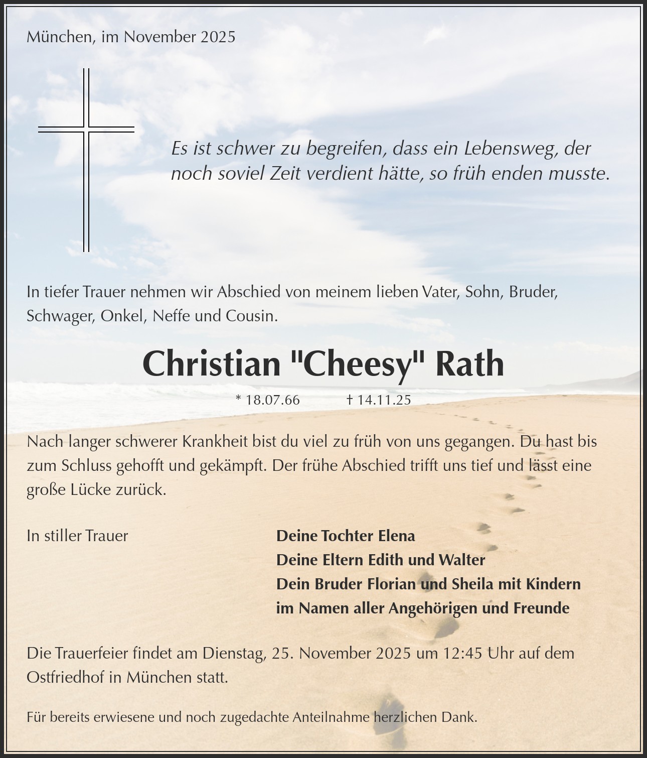 Die Trauerfeier findet am Dienstag, 25. November 2025 um 12:45 Uhr auf dem Ostfriedhof in München statt.