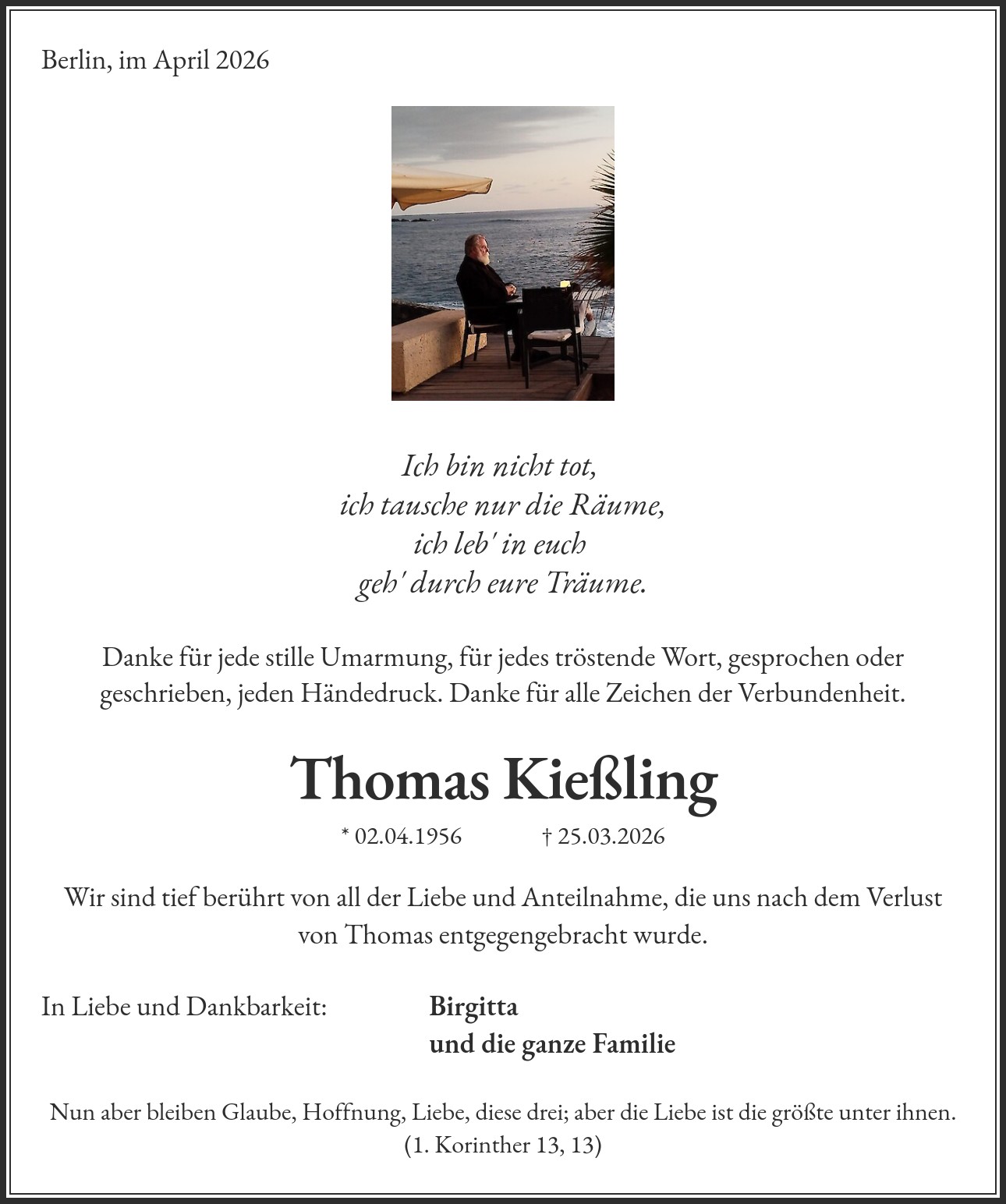 Wir sind tief berührt von all der Liebe und Anteilnahme, die uns nach dem Verlust von Thomas entgegengebracht wurde.