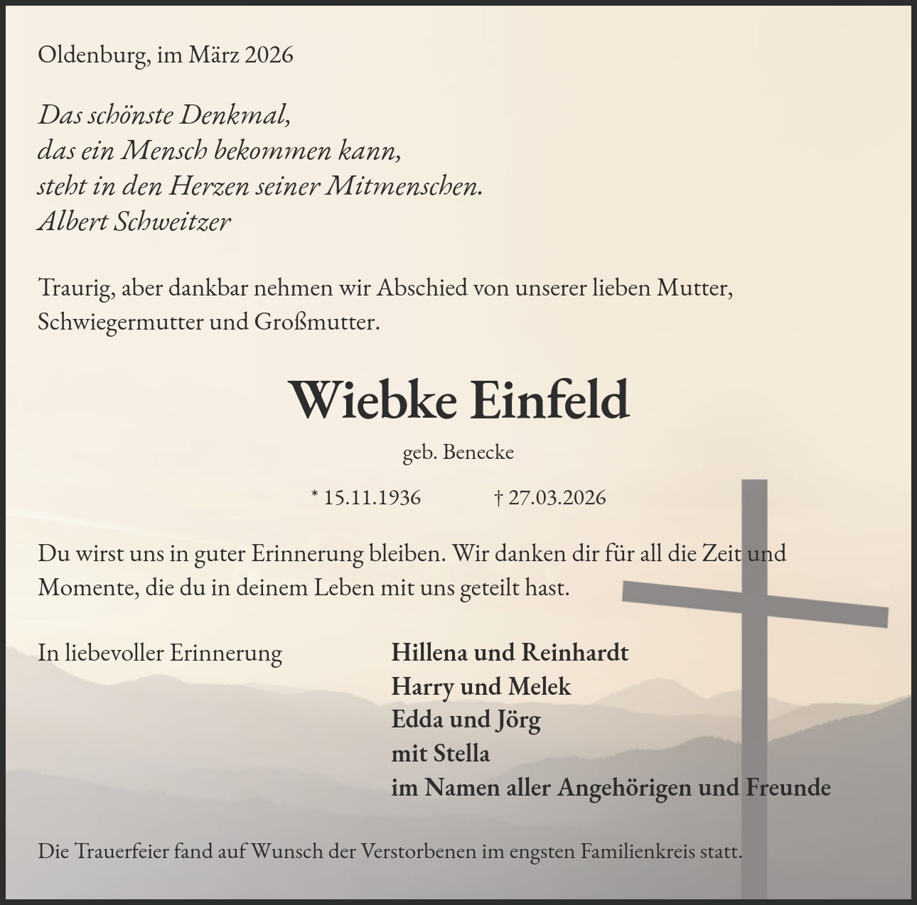 Hillena und Reinhardt Harry und Melek Edda und Jörg mit Stella im Namen aller Angehörigen und Freunde