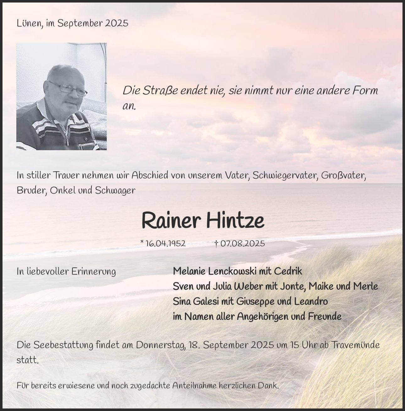 Die Seebestattung findet am Donnerstag, 18. September 2025 um 15 Uhr ab Travemünde statt.